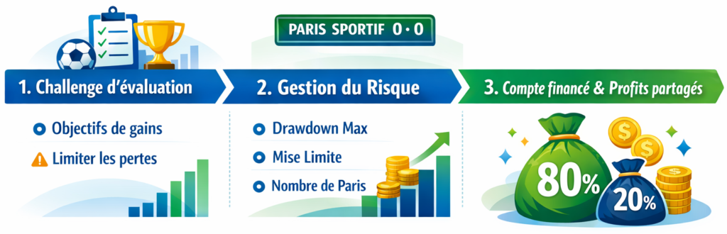 Une prop firm de paris sportifs est une société qui finance des parieurs après une phase d’évaluation. Le parieur respecte des règles de gestion du risque et partage les profits générés avec la société, sans risquer son propre capital.